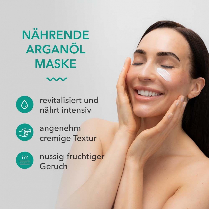 Питательная маска для лица с аргановым маслом и минералами Мертвого моря для сухой, требовательной кожи. Увеличивает упругость, смягчает кожу, уменьшает мелкие морщины и придает коже эластичность и молодой вид. Аптечный эксклюзив, дерматологически протестирован.