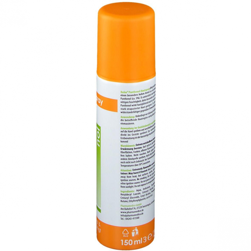 ReAm® Panthenol Hautspray - спрей для ухода за кожей с высоким содержанием пантенола (около 5%). Успокаивает и увлажняет раздраженную, поврежденную кожу, способствует регенерации, особенно эффективен после солнечных ожогов. Содержит масляный компонент на основе кокосового и пальмоядрового масла с хорошей дерматологической переносимостью.