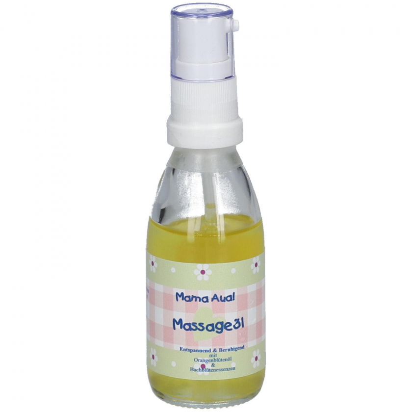 Органическое массажное масло Mama Aua! с эссенциями цветов Баха и маслом цветков апельсина для успокаивающего массажа. Не содержит парфюма, красителей и консервантов. Подходит для расслабляющего массажа тела.