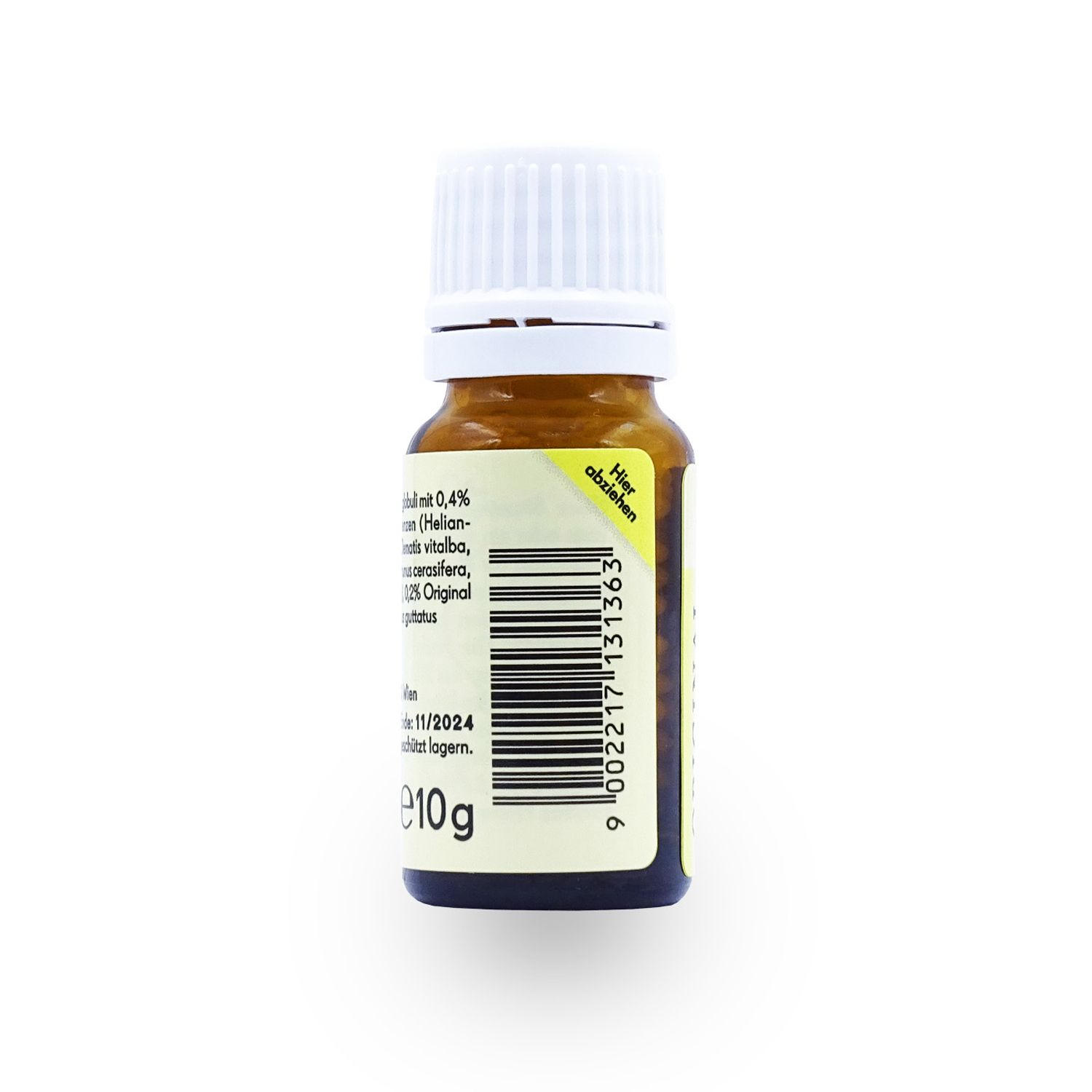 Состав: Био сахарозные глобули с 0,4% оригинальных эссенций цветов Баха (Helianthemum nummularium, Clematis vitalba, Impatiens glandulifera, Prunus cerasifera, Ornithogalum umbellatum), 0,2% оригинальной эссенции цветов Баха Mimulus guttotus