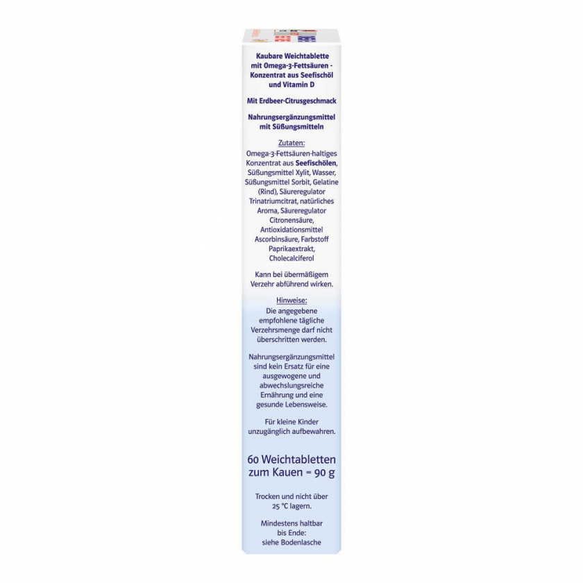Doppelherz® system OMEGA-3 GEL-TABS family - жевательные мягкие таблетки с омега-3 жирными кислотами EPA и DHA из рыбьего жира и витамином D. Подходят для всей семьи - детей от 4 лет, подростков и взрослых. Имеют приятный клубнично-цитрусовый вкус. Пищевая добавка для восполнения недостатка важных нутриентов.