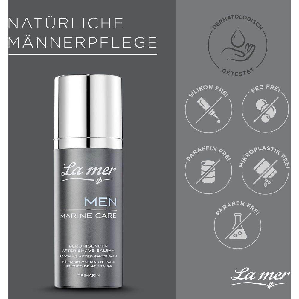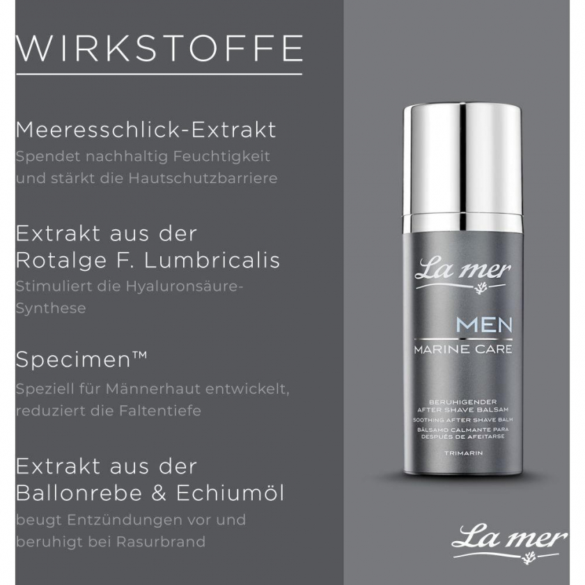 Мужской бальзам после бритья La mer Men с морским комплексом Trimarin для успокоения кожи, увлажнения и защиты от раздражений после бритья. Подходит для чувствительной кожи, быстро впитывается без жирного блеска.