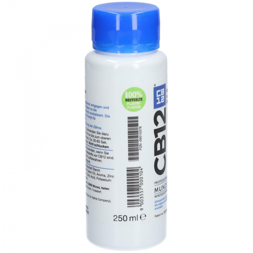 CB12 Mundspülung - антибактериальная жидкость для полоскания рта с запатентованной комбинацией ацетата цинка и хлоргексидина. Эффективно борется с причиной неприятного запаха изо рта до 12 часов, укрепляет зубную эмаль благодаря фториду натрия, имеет свежий мятный вкус и не содержит алкоголь. Рекомендуется для ежедневного применения с 12 лет.