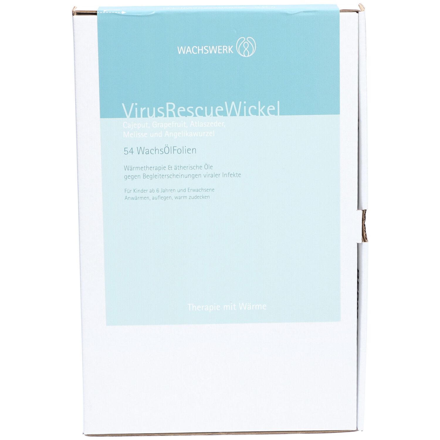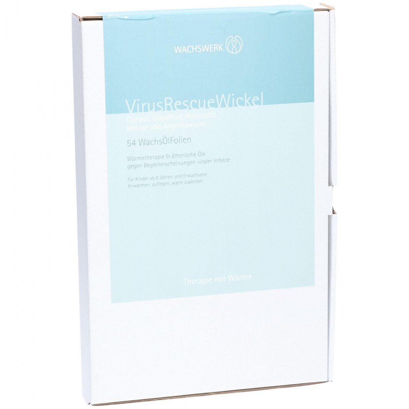 VirusRescueWickel - это согревающий компресс с эфирными маслами для облегчения симптомов вирусных инфекций. Применяется при кашле, боли в груди и для улучшения кровообращения в дыхательных путях. Подходит для взрослых и детей от 6 лет. В упаковке 54 одноразовых восково-масляных пленок размером 15x21 см.