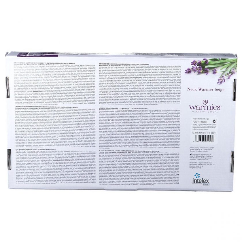 Эргономичный шейный термопояс Warmies® бежевого цвета для тепловой и холодной терапии. Съемный лавандовый наполнитель, вес 710 г, длина 35 см. Разогревается в микроволновке или духовке, снимает напряжение и способствует расслаблению