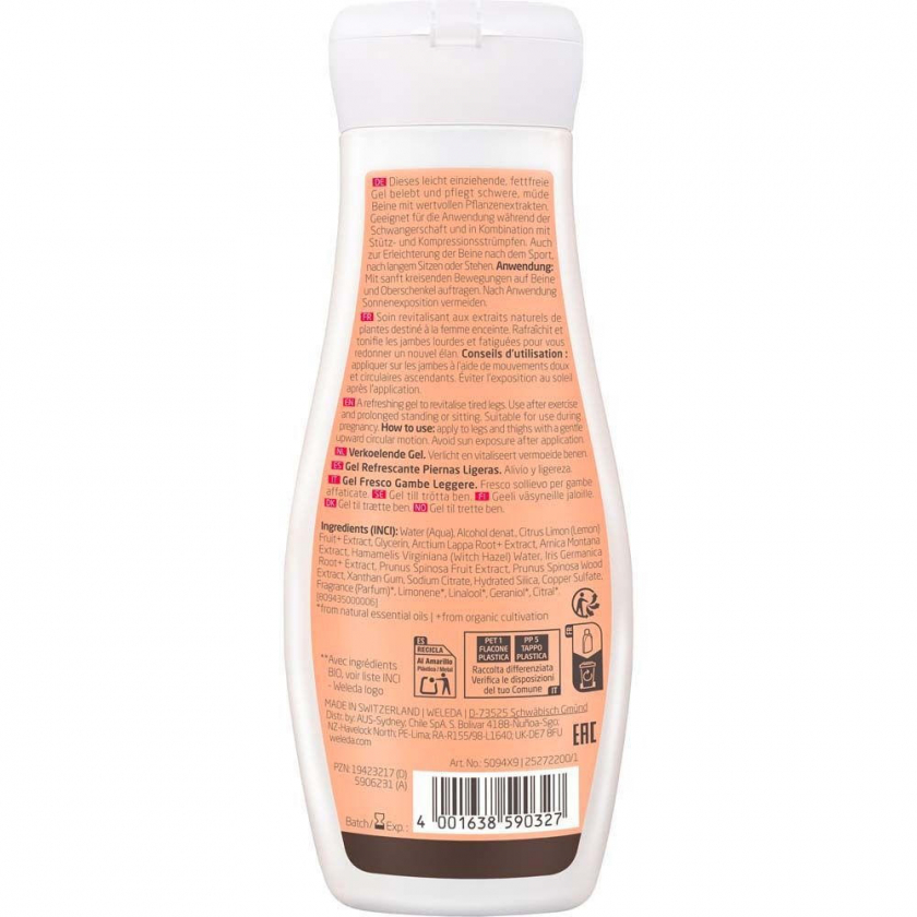 Weleda Leichte Beine Frische-Gel - освежающий гель для уставших и тяжелых ног. Содержит натуральные растительные экстракты арники и гамамелиса, легко впитывается, не содержит масла. Подходит для использования после спорта, длительного сидения или стояния, а также во время беременности.