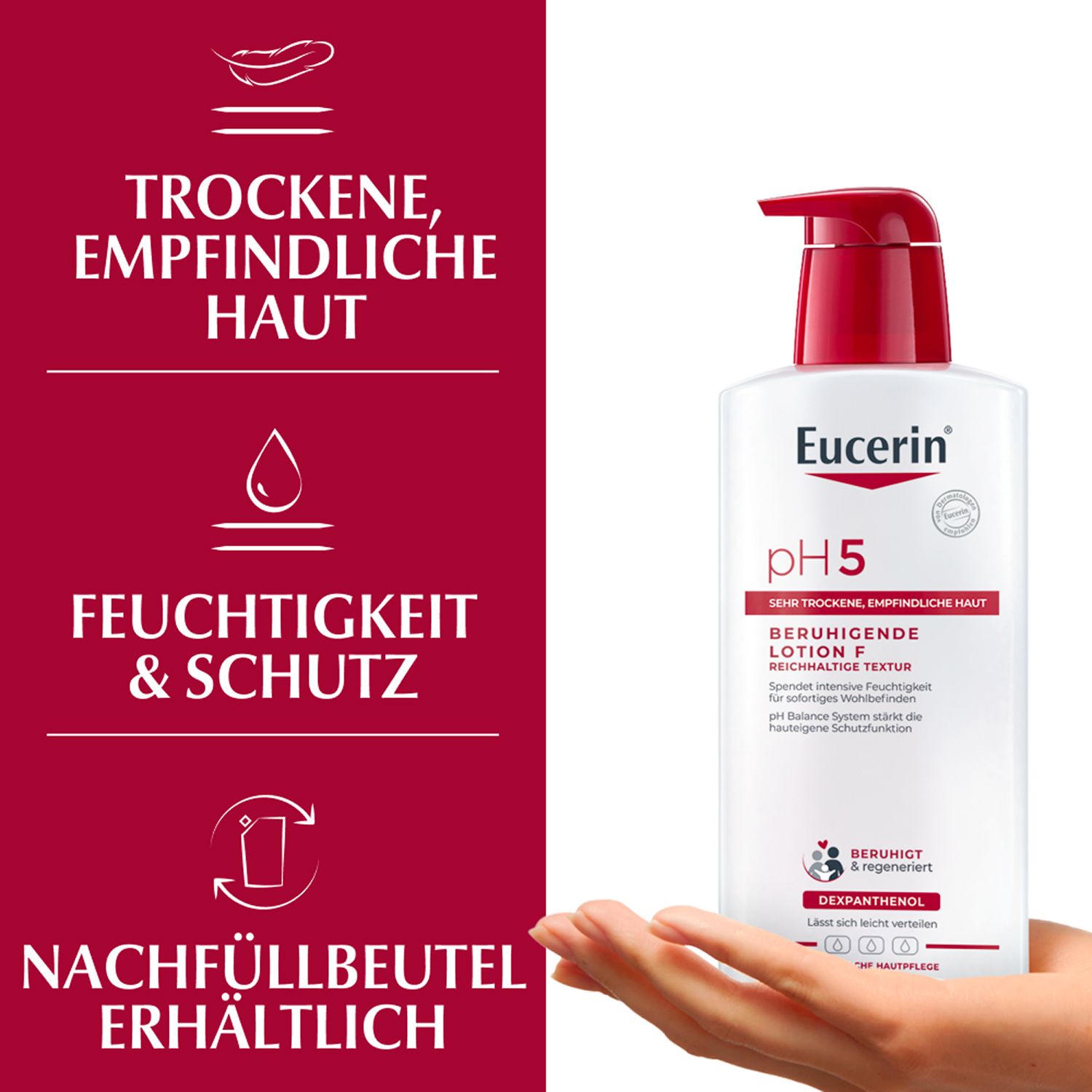 Eucerin® pH5 Reichhaltige Textur Lotion F – beruhigt strapazierte und trockene Haut & macht die Haut widerstandsfähiger - Jetzt 20% sparen mit Code "eucerin20"