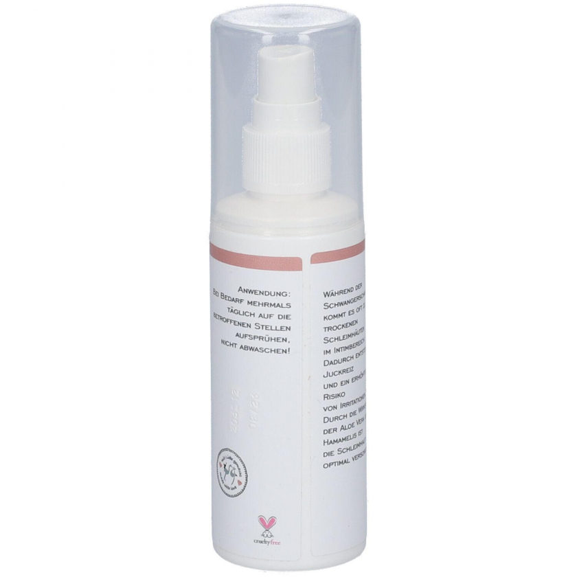 Спрей с алоэ вера для ухода за сухими слизистыми оболочками интимной зоны во время беременности. Содержит натуральные компоненты: алоэ вера, гамамелис и пантенол, которые увлажняют, успокаивают и защищают слизистые, предотвращая зуд и раздражения.