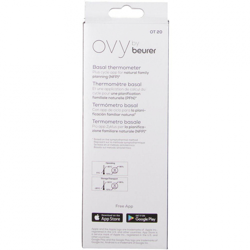 Базальный термометр Beurer OT 20 для точного измерения температуры тела с целью отслеживания менструального цикла и планирования беременности. Имеет гибкий наконечник, подходит для орального и вагинального использования, водонепроницаем, с точностью ±0,05°C. Совместим с приложением Ovy для анализа данных цикла.