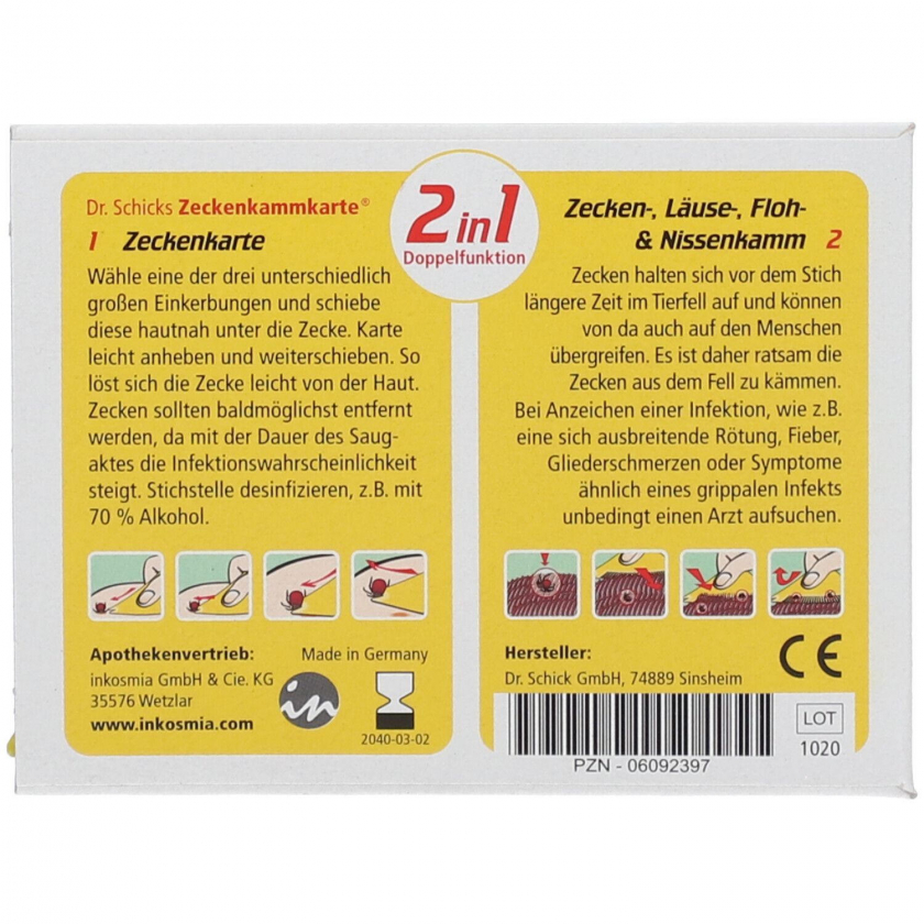 Zeckenkammkarte - специальная карточка-гребень для безопасного удаления клещей с домашних животных. Удобный инструмент для ухода за животными, помогающий предотвратить укусы клещей и связанные с ними заболевания.