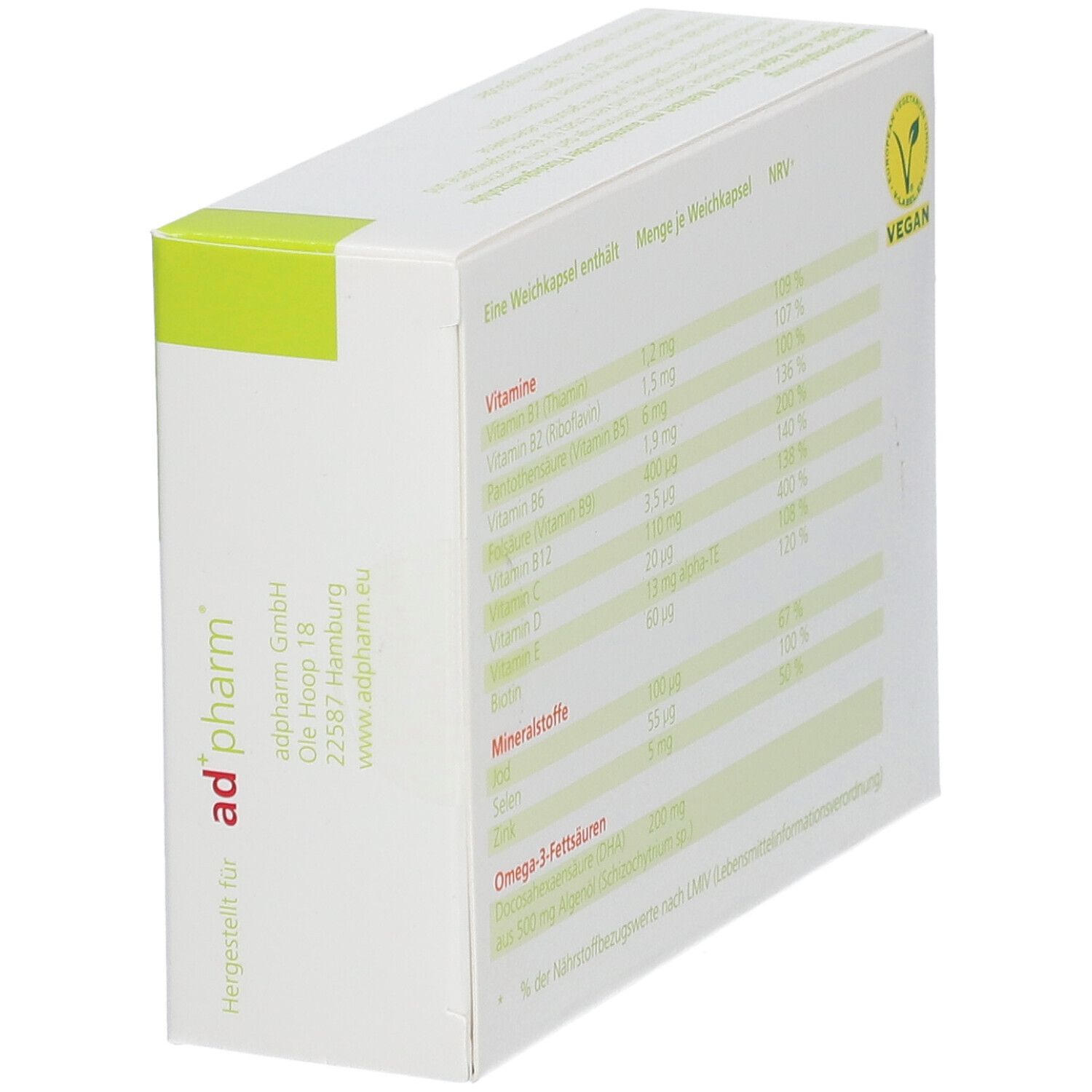 Пищевая добавка для женщин с желанием забеременеть, беременных и кормящих. Содержит DHA из водорослей, фолиевую кислоту, йод, витамин D и другие важные витамины и микроэлементы. Веганский продукт, разработанный гинекологами на основе исследований.