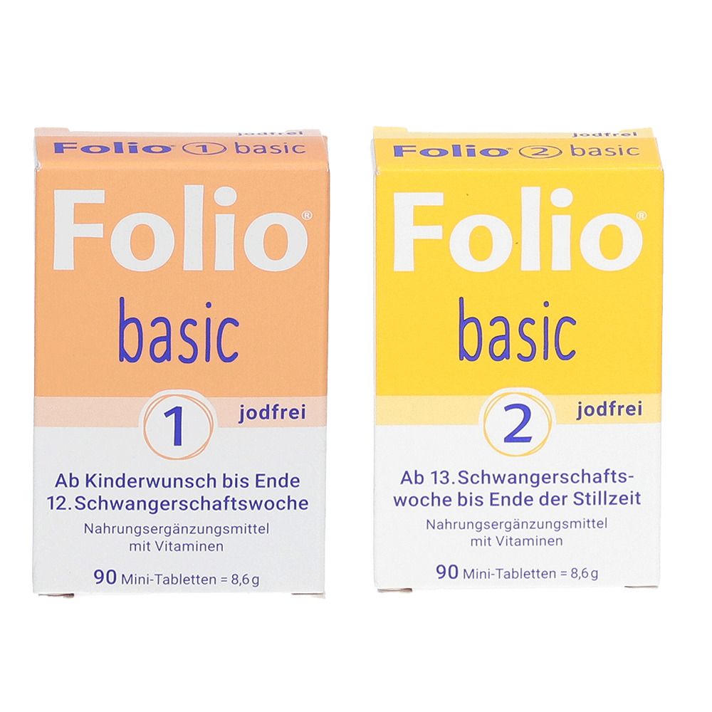 Витаминный комплекс Folio 2 basic jodfrei для беременных и кормящих женщин с 13-й недели беременности до конца грудного вскармливания. Содержит фолиевую кислоту (400 мкг), витамин B12 (9 мкг) и витамин D3 (20 мкг). Не содержит йод, подходит женщинам, которым противопоказан дополнительный прием йода. Способствует нормальному делению клеток, росту материнских тканей, поддержанию костей и иммунной системы.