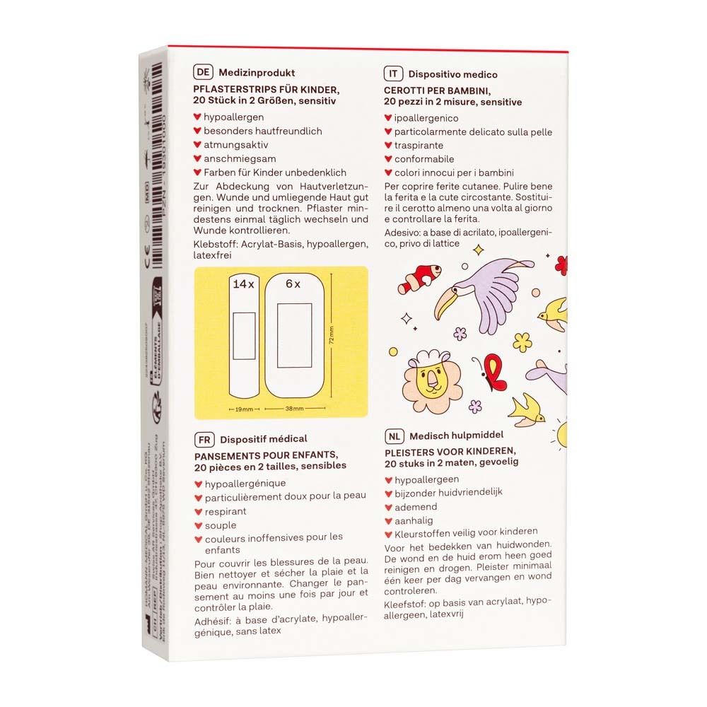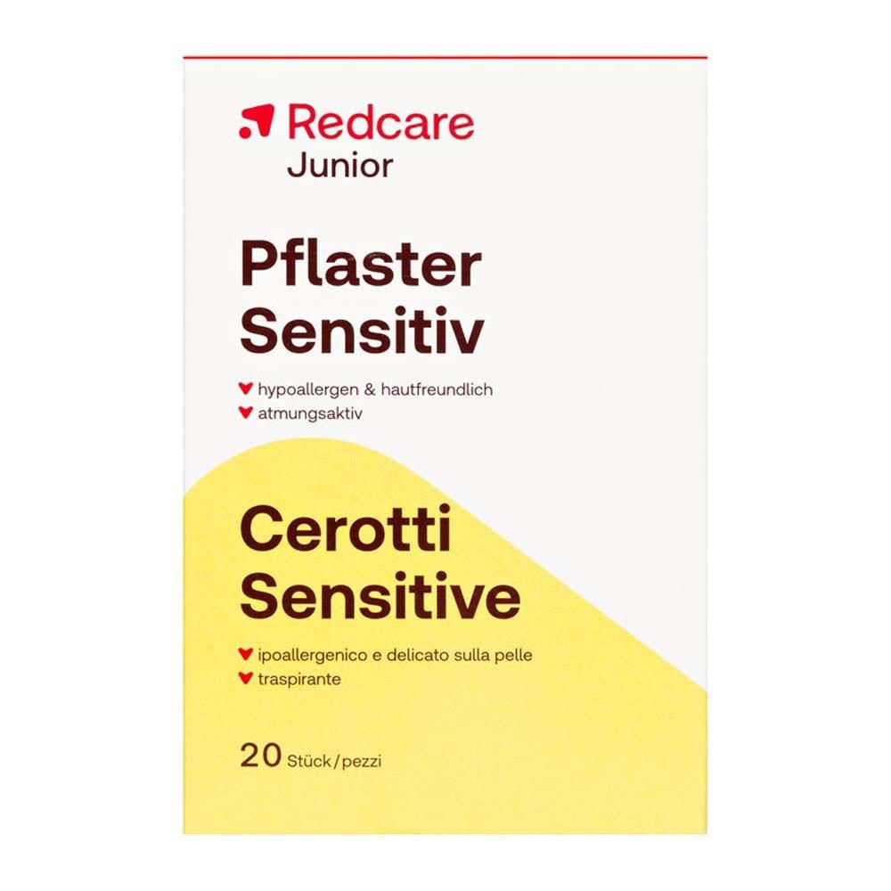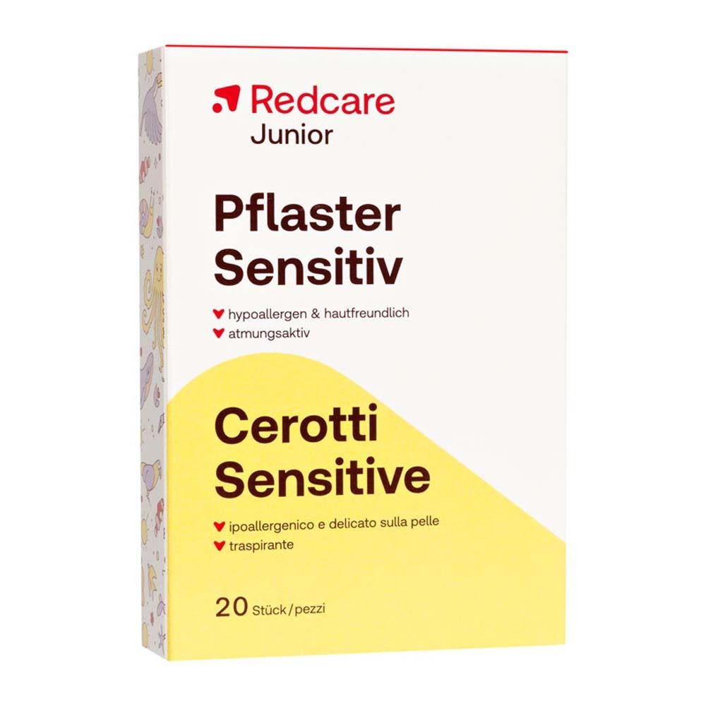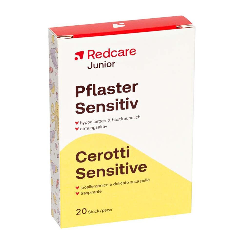 Детские гипоаллергенные пластыри Redcare Junior Pflaster Sensitiv для защиты небольших ран и ссадин. Атмосферостойкие, дышащие, с безопасными для детей красителями. В упаковке 20 штук двух размеров.