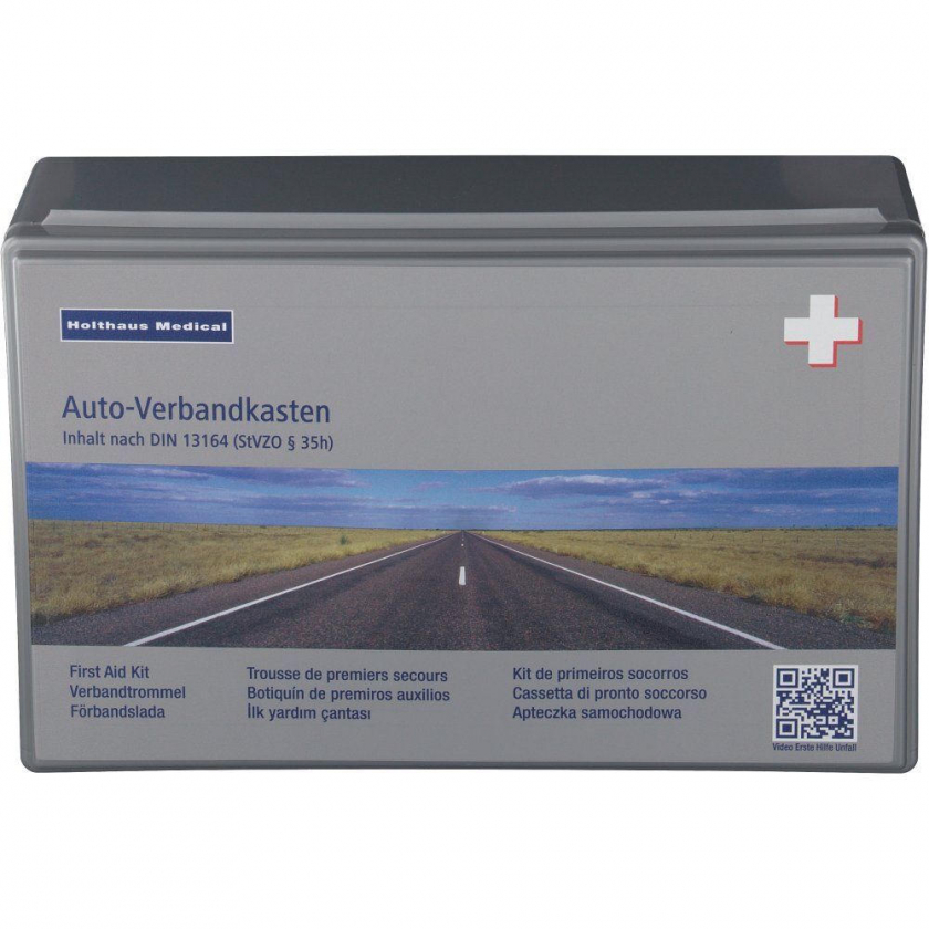 Автомобильная аптечка Klassik KFZ-Verbandskasten Auto соответствует стандарту DIN 13164, изготовлена из ударопрочного пластика с защитной пленкой и 9-язычной маркировкой на крышке. Предназначена для оказания первой помощи в транспортных средствах.