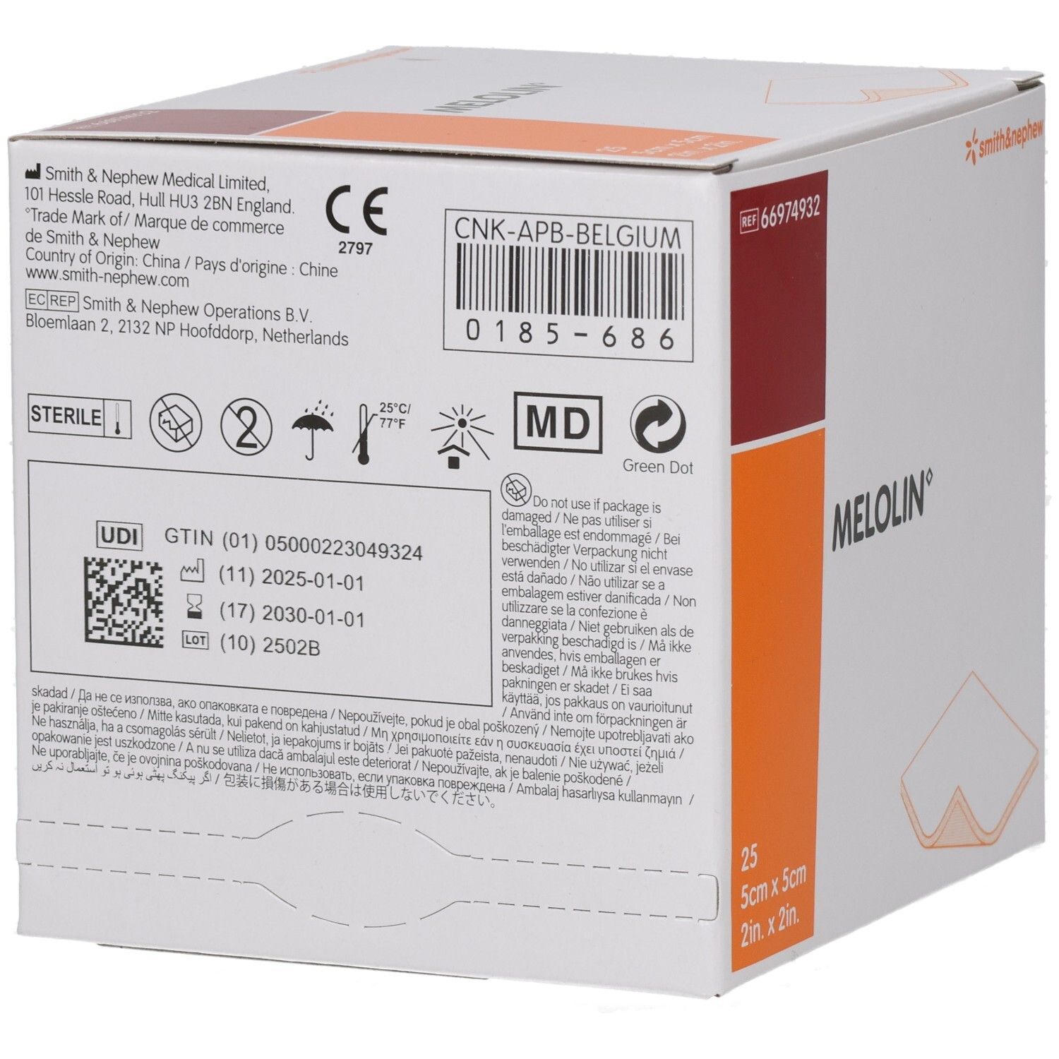 MELOLIN® - стерильные раневые повязки 5x5 см для первичной обработки ран с низким и умеренным экссудатом. Повязка имеет хлопково-полиэстеровую основу с высокой впитывающей способностью и полиэстеровым покрытием со стороны раны, предотвращающим прилипание. Обеспечивает атравматичную смену повязки, защищает рану и требует фиксации вторичным перевязочным материалом. Без латекса.