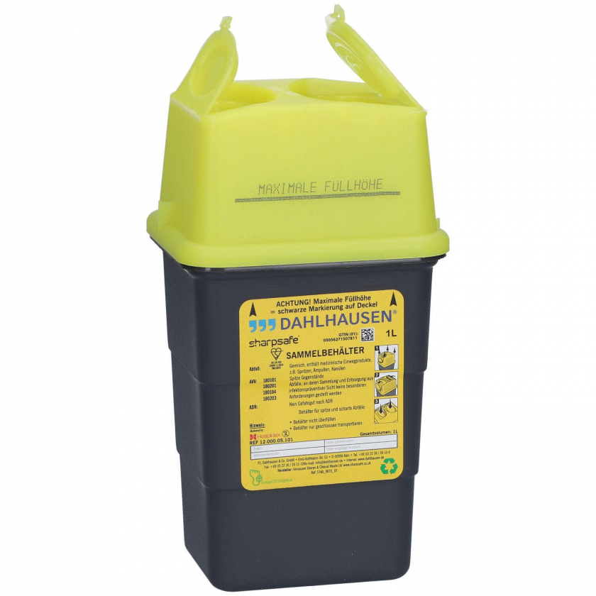 Sharpsafe® 1L green - контейнер для безопасной утилизации острых медицинских отходов. Оптимизирован для сбора игл, шприцев, скальпелей и инсулиновых ручек. Имеет удобную систему закрытия с 1 и 3 щелчками, ручку для переноски и маркировку максимального уровня заполнения. Безопасен для использования одной рукой.