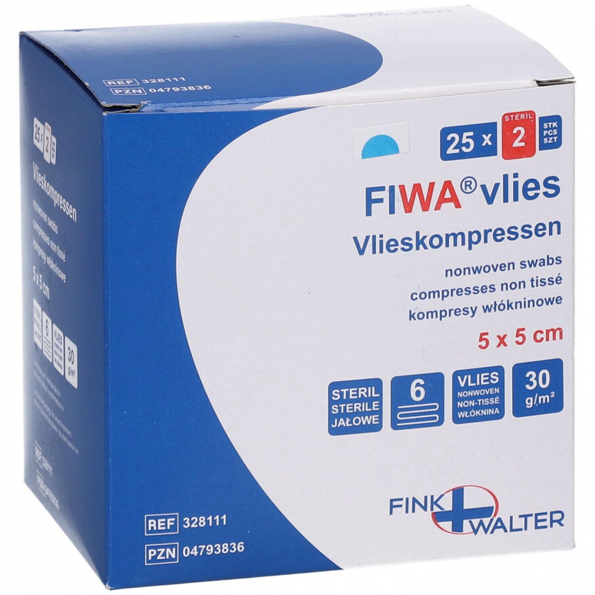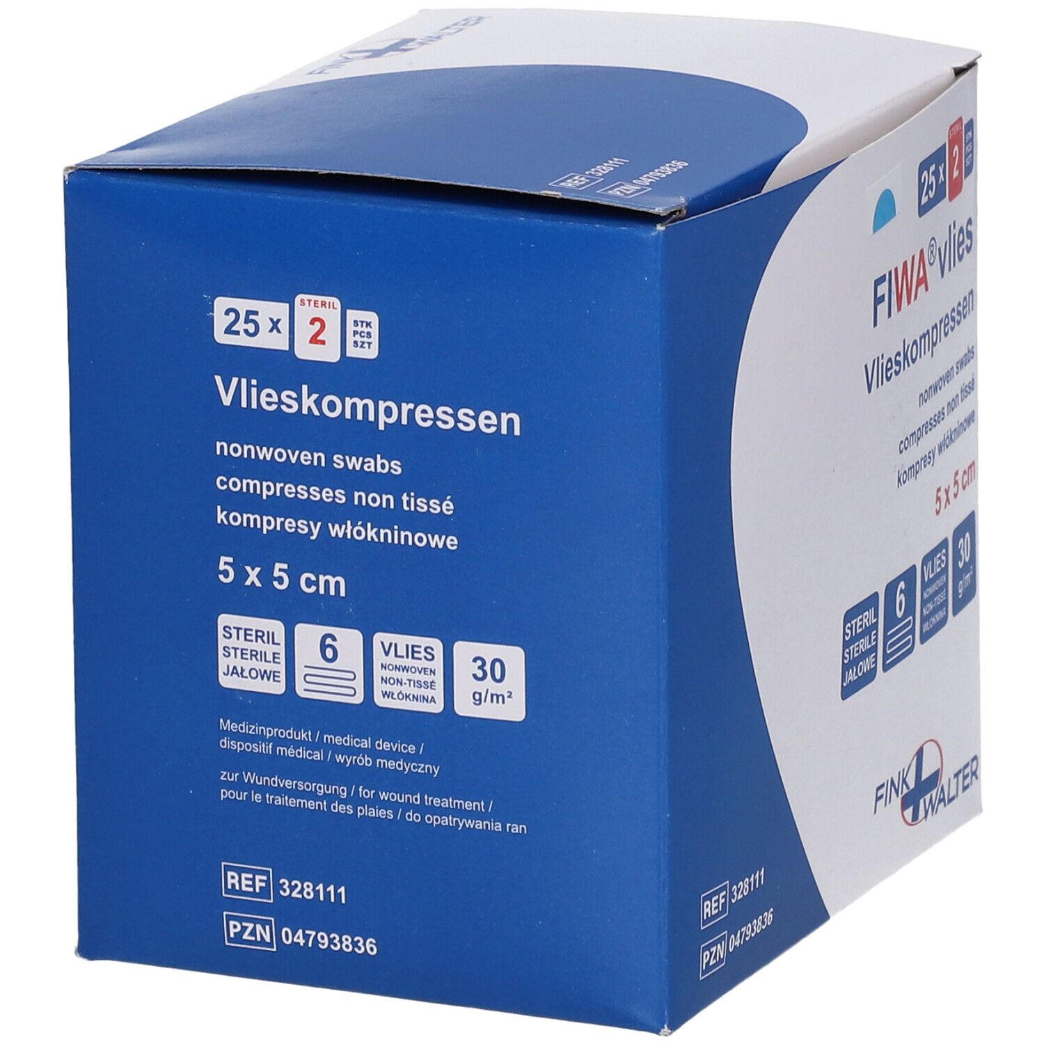 Стерильные нетканые компрессы 5x5 см для обработки ран. Изготовлены из 70% целлюлозной ваты и 30% полиэстера, обладают высокой впитывающей способностью, мягкие и воздухопроницаемые. Подходят для первичной обработки загрязненных, инфицированных и мокнущих ран, а также для небольших хирургических процедур.