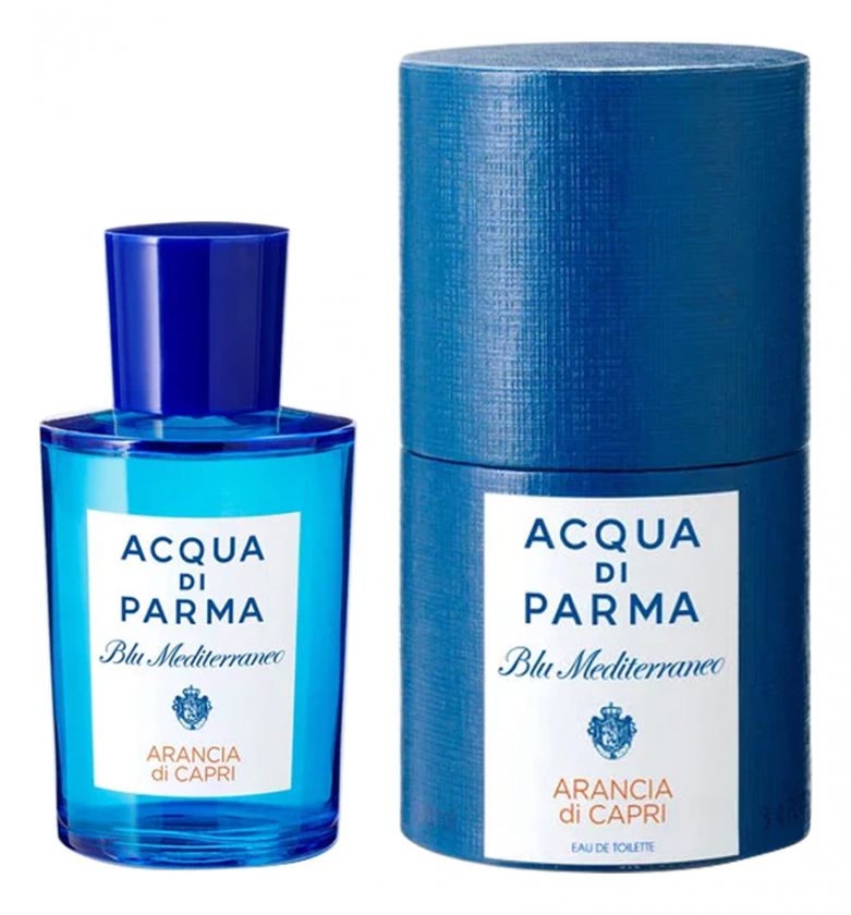 Аромат Arancia Di Capri представлен в культовом флаконе Acqua di Parma с элементами ар-деко. Стекло, чистое, роскошное и толстое, окрашено в глубокий синий цвет, который напоминает прозрачность моря в игре отражений.
