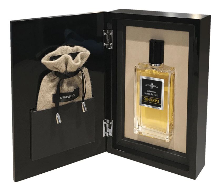 Парфюм Affinessence Cuir Curcuma заключен в изысканный стеклянный флакон, упрятанный в роскошный лакированный деревянный футляр.