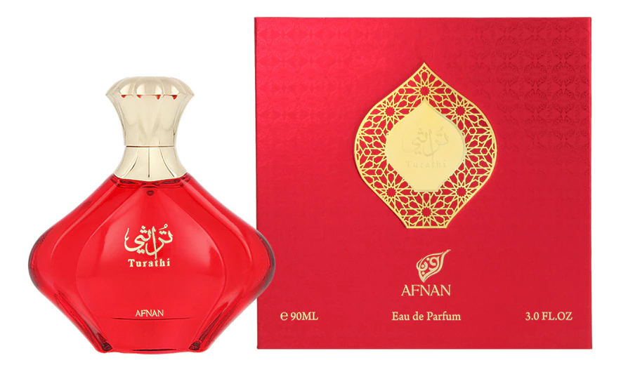 Afnan Turathi Red — волнующий и дерзкий женский цветочно-фруктовый аромат, выпущенный в 2019 году арабским парфюмерным брендом Afnan. Парфюм является частью коллекции Turathi, задуманной, как ольфакторная интерпретация цветов. Композиция посвящена красному цвету, символизирующему страсть и вдохновляющему на самые яркие романтические эмоции. Как и все парфюмы бренда, аромат отличается яркостью, длительностью и шлейфовостью звучания. А роскошный красный флакон с серебристым колпачком станет украшением любого туалетного столика.