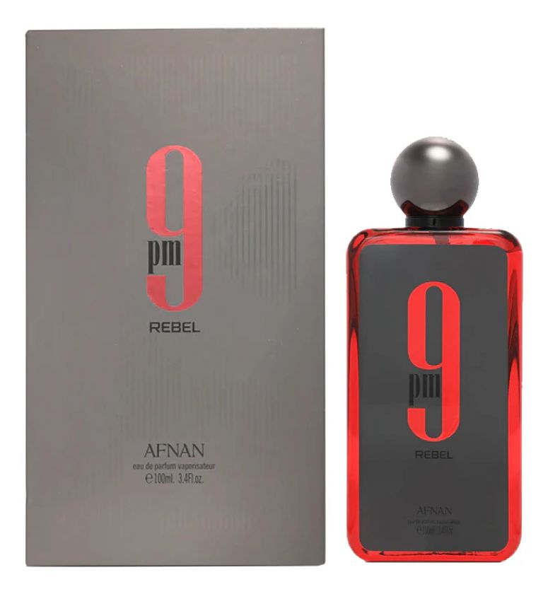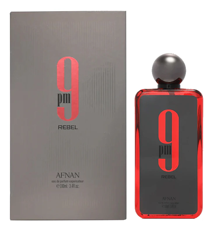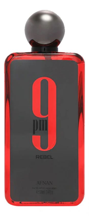 Afnan 9 PM Rebel — изысканный и дерзкий унисекм-аромат с фруктовыми, древесными и амбровыми нотами, выпущенный в 2024 году арабским парфюмерным домом Afnan. Как и предыдущие пять ароматов коллекции, аромат 9PM выпускается в прозрачном, гладком, прямоугольном флаконе, но при этом внутри него находится огненно-красная жидкость. Флакон украшен серебристой этикеткой, на которой написано название аромата.