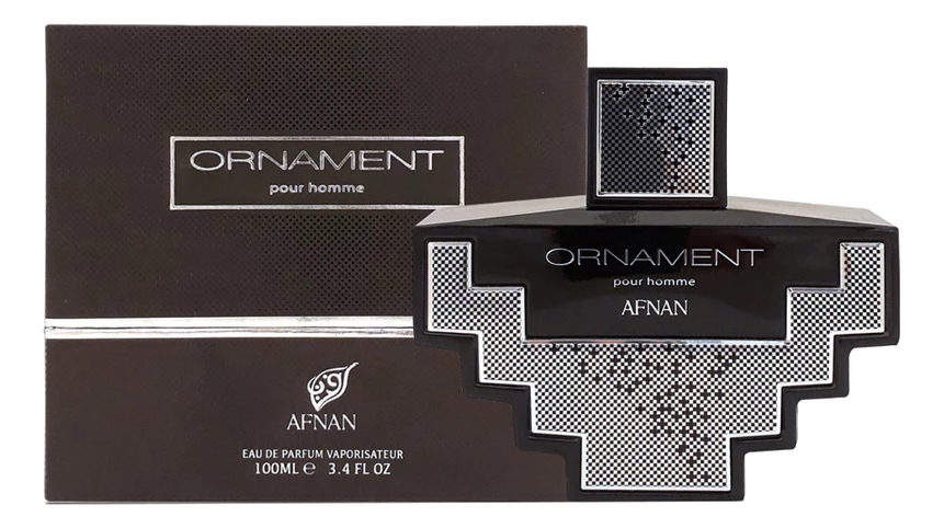 Afnan Ornament Pour Homme – мужской, сдержанный и яркий, магический и огненный, аромат, выпущенный в продажу известным брендом из ОАЭ в 2014 году. Необычный, выполненный в геометрическом направлении, флакон, вполне соответствует названию.