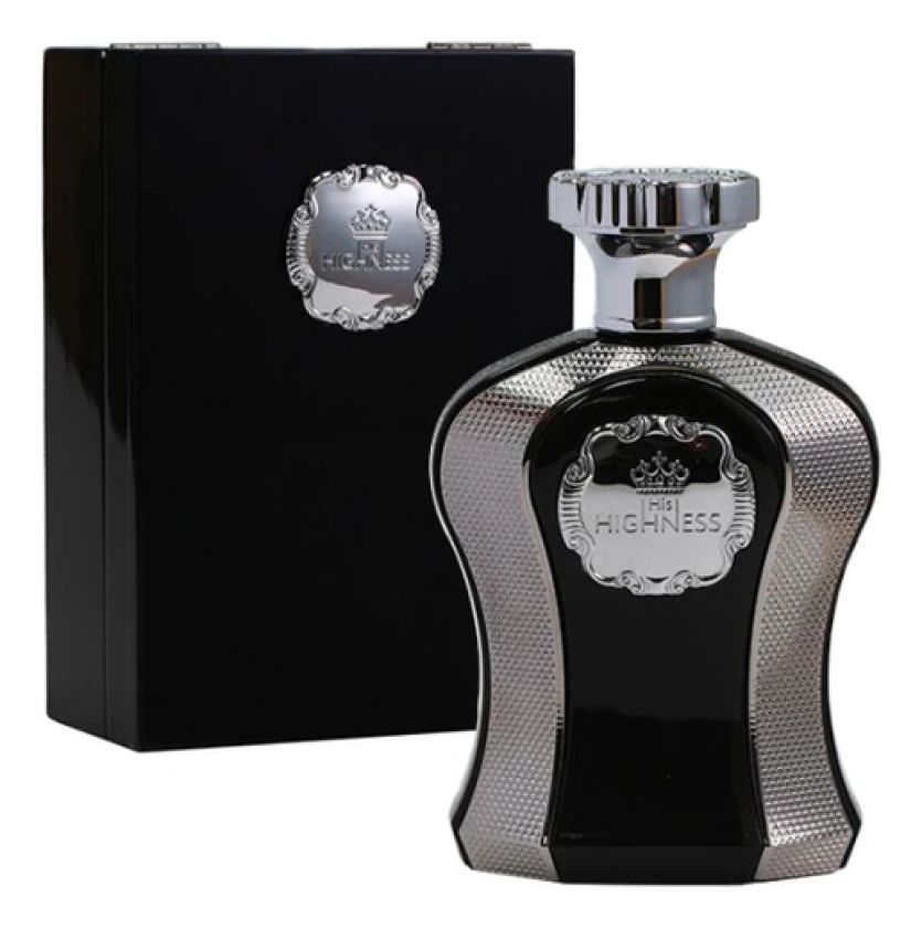 His Highness – роскошный, истинно королевский мужской восточно-древесный парфюм, выпущенный популярным арабским парфюмерным домом Afnan в рамках ароматического дуэта «Highness», созданного для него и для нее. Роскошный серебристо-черный флакон с парфюмом заботливо уложен на бархатную подложку в черной лаковой шкатулке, украшенной серебристым логотипом бренда.