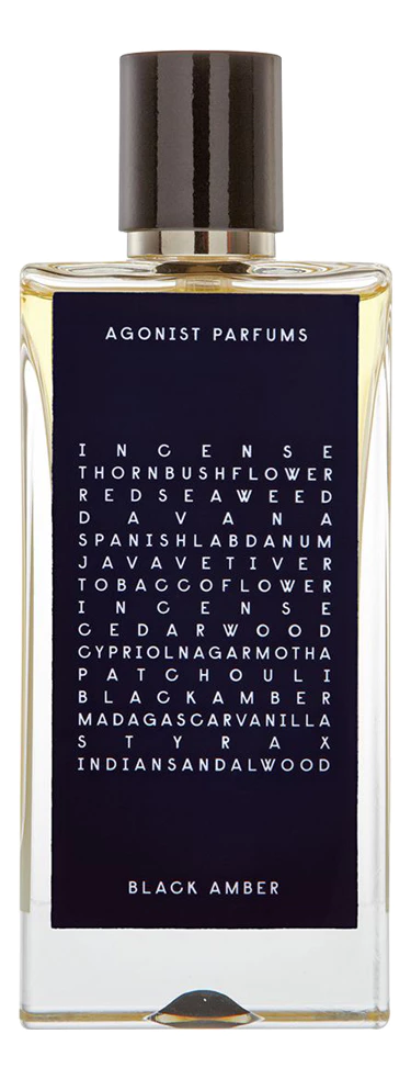 Очаровательная парфюмерная композиция аромата Black Amber от Agonist начинается с верхних нот испанского лабданума, полыни, красных морских водорослей, иранского ладана, артемизии и ликера, продолжается нотками сердца белого кедра, кипрского нагармота, душистого табака, ветивера острвоа Ява и олибанума, а также переходит в яркую базу, состоящую из нот мадагаскарской ванили, индонезийской пачули, черной амбры, стиракса и индийского сандалового дерева.