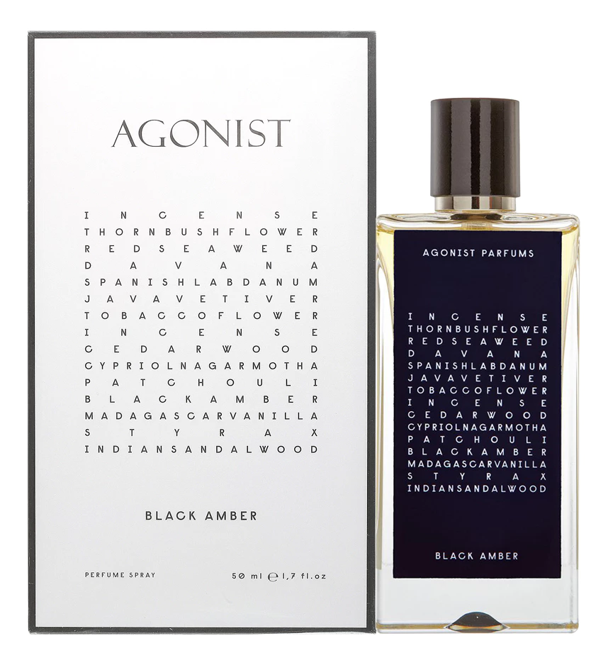 Известный шведский бренд Agonist выпустил свой аромат для мужчин и женщин Black Amber в 2012 году. Он принадлежит к группе древесные ароматы. Дизайнерами оригинального флакона являются Asa Jungnelius и Kosta Boda.
