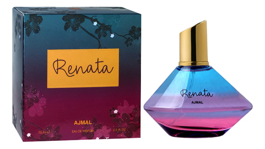 Renata — утонченный, волнующий и романтичный женский цветочный аромат, выпущенный в 2019 году арабским парфюмерным брендом Ajmal. Своим звучанием парфюм словно приглашает на прогулку по ночному саду, когда прохлада касается цветов и деревьев и они наполняют атмосферу сада восхитительными ароматами. Ассиметричный радужный флакон парфюма идеально соответствует общему настрою заключенной в нем ароматической композиции.