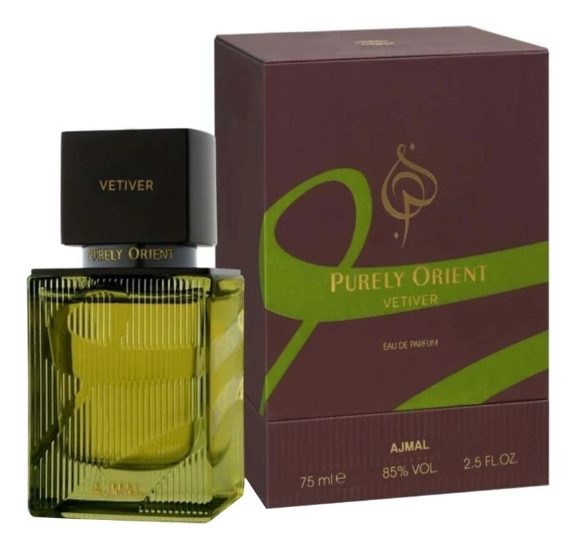 Vetiver — роскошный унисекс-аромат, выпущенный в 2019 году арабским парфюмерным брендом Ajmal Purely Orient. Он является частью коллекции Purely Orient, включающей десять великолепных ароматов в роскошных флаконах, созданных восточными парфюмерами для европейского рынка. Ароматы посвящены лучшим парфюмерным ингредиентам восточной парфюмерии и воплощают в себе особую красоту и мистицизм Ближнего Востока.