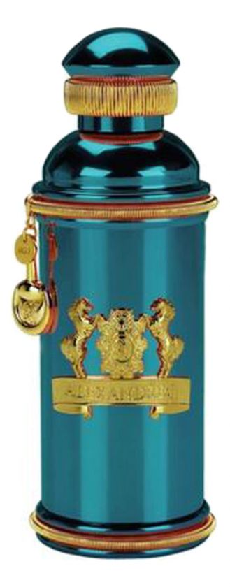 Роскошный флакон парфюма просто нельзя не заметить. Выполненный в восточном стиле, он восхищает насыщенным бирюзово-металлическим сиянием и украшен золотыми элементами, эффектно представляя известную парфюмерную марку.