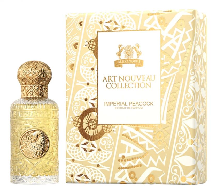 Alexandre J. Art Nouveau Collection - Imperial Peacock 2023 — теплый и бархатистый древесно-пряный унисекс-парфюм, выпущенный в 2023 году французским брендом Alexandre J. в рамках эксклюзивной коллекции Art Nouveau Collection. Аромат является фланкером выходившего годом ранее парфюма с теми же названием. От исходного аромата он сохранил ароматический рисунок композиции, взяв только главные ольфакторные компоненты. Упрощение ароматической композиции компенсируется очень высокой концентрацией духов — более 50 %, что позволяет в полной мере раскрыться присутствующим в парфюме ароматическим нотам.