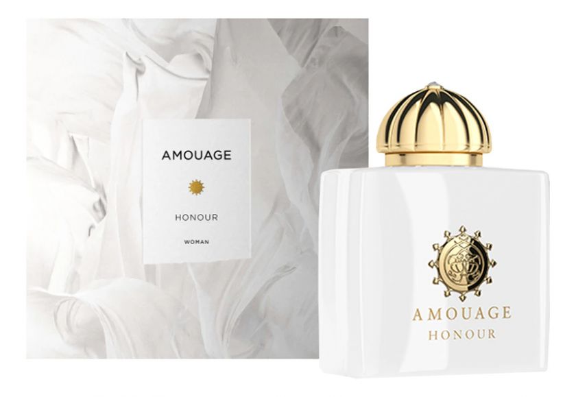 Парфюмерная композиция Amouage Honour women состоит их верхних нот кориандра, перца и ревеня; нот сердца: гвоздики, жасмина, гардении, мексиканской туберозы и ландыша; нот базы: ветивера, опопонакса, амбры, ладана и кожи.