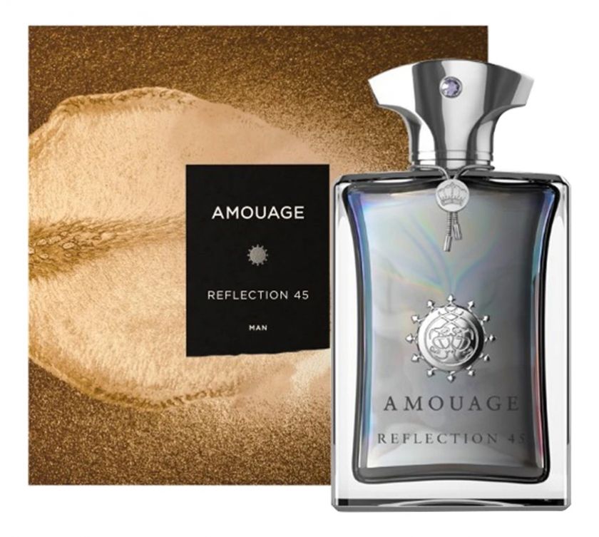 Amouage Reflection 45 — глубокий и гармоничный мужской древесный аромат с красивыми цветочно-мускусными оттенками, выпущенный в 2021 году арабским парфюмерным брендом Amouage. Созданный парфюмером Lucas Sieuzac аромат отличается повышенной концентрацией эфирного масла — 45%, что обусловливает исключительную стойкость, яркость и шлейфовость звучания парфюма.