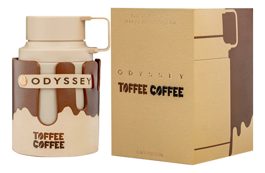 Armaf Odyssey Toffee Coffee Café Edition — сладкий древесно-цитрусовый унисекс-парфюм, выпущенный в 2025 году арабским парфюмерным брендом Armaf в рамках коллекции Odyssey. Этот аромат, как первый глоток кофе с мёдом, выпитый в уютном кафе на рассвете, а симфония сладости и глубины: нежная, чувственная, обволакивающая, как шаль из кашемира, брошенная на плечи в прохладный вечер. Здесь нет места резкости — только изысканная гармония, где гурманская сладость встречается с цитрусовой свежестью, а древесная основа обволакивает, как плащ из чёрного шёлка.