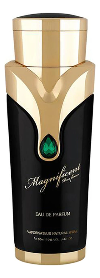 Armaf Magnificent Pour Femme — элитная восточная парфюмерная вода с цветочно-фруктовым сладким ароматом для женщин, созданная в 2018 году арабским парфюмерным брендом Armaf из ОАЭ. Таинственный чарующий чувственный парфюм Armaf Magnificent Pour Femme — ольфакторное отображение истинного богатства, королевской роскоши и утонченного восточного аристократизма.