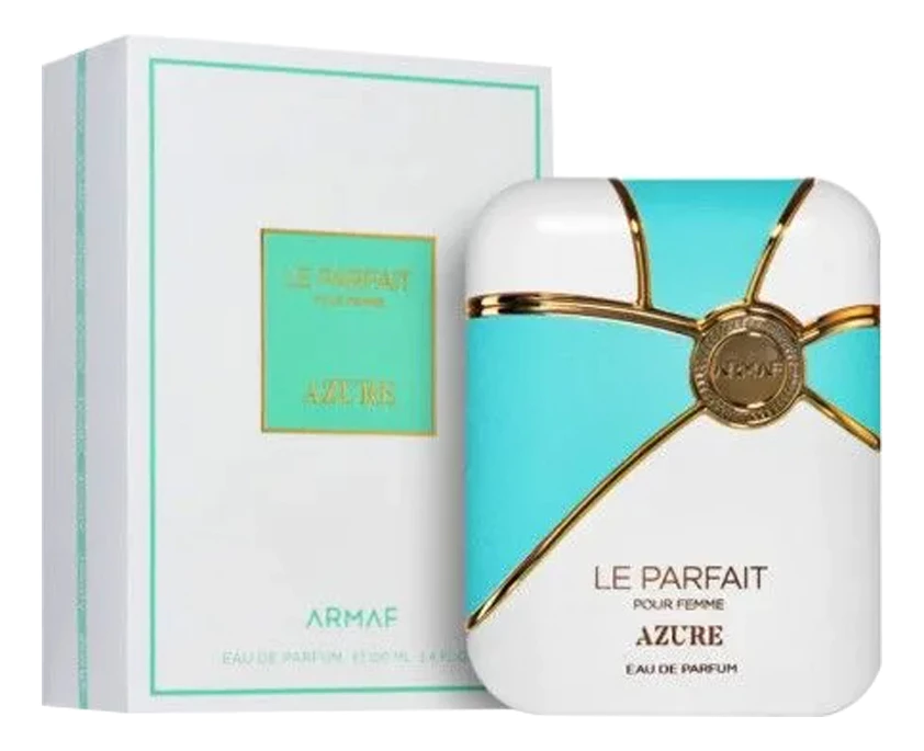 Armaf Le Parfait Azure Pour Femme — очаровательный женский цветочно-фруктовый парфюм, выпущенный в 2022 году арабским парфюмерным домом Armaf. Посвященный волшебному сочетанию ярко-голубого неба, белоснежных облаков и золотистых песчаных дюн, парфюм представлен в стильно флаконе, в котором белые и голубые участки разделены золотистыми полосками.