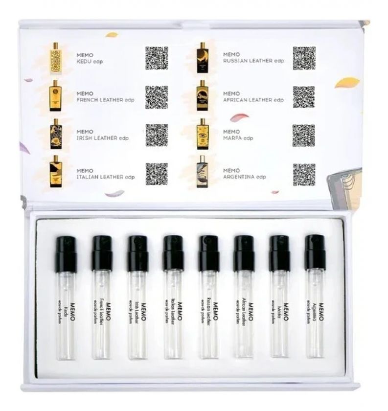 Если вы любите необычные ароматы и не прочь отправиться в ольфакторное путешествие по миру, приятным открытием станет подобранный нашими специалистами набор из восьми пробников «Топ ароматов Memo». В него входит пять композиций из «Кожаной коллекции» бренда, вдохновленной разнообразием запаха выделанной кожи в разных уголках мира — Франции, России, Ирландии, Италии и Африки. Остальные три парфюма собраны из разных коллекций и демонстрируют разнообразие и уникальность выпускаемой брендом парфюмерии.
