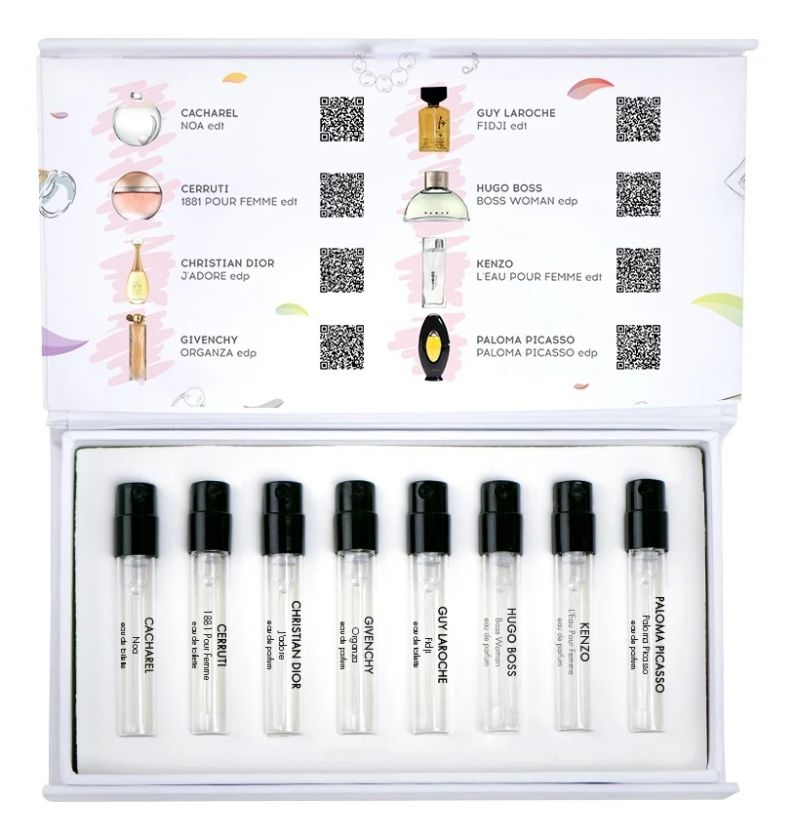 Набор пробников восьми великих классических ароматов станет роскошным подарком для любой женщины, вызвав у неё море положительных эмоций.
