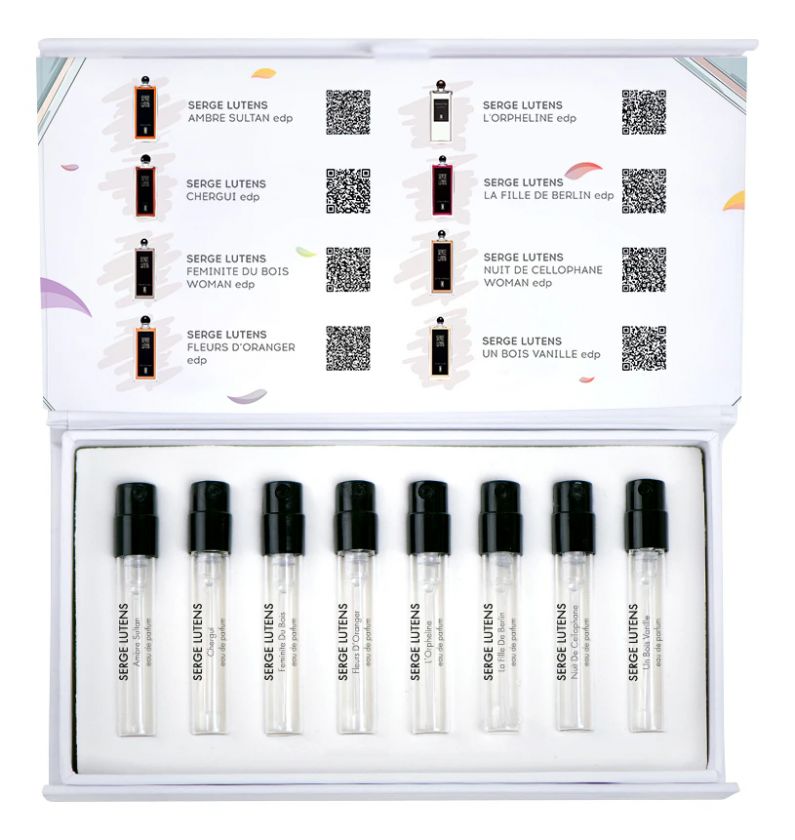 Парфюмы Серж Лютенс отличаются качеством, глубиной и шлейфовостью звучания. Покупая набор, вы получаете восемь эксклюзивных ароматов, которые можно использовать не только для выбора духов, но и для ежедневного ношения и создания различных модных образов. Каждый мини-флакон объёмом 1,5 мл обеспечивает до 35 распылений.