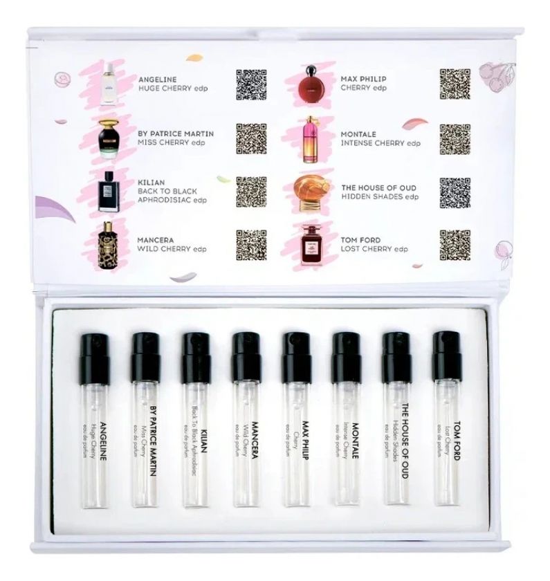 Все парфюмы набора отличаются исключительным качеством и станут прекрасным подарком для любителя вишевых ароматов.