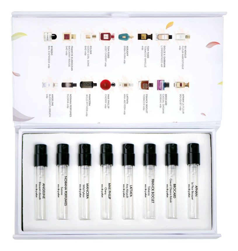 Наши специалисты создали уникальную подборку ароматов-двойников топовой женской парфюмерии. Набор содержит восемь ароматических композиций от разных брендов. Каждая из них обладает очень близким звучанием к определенному люксовому или нишевому парфюму.
