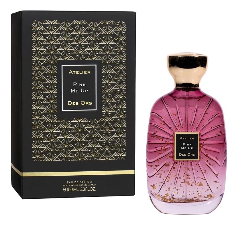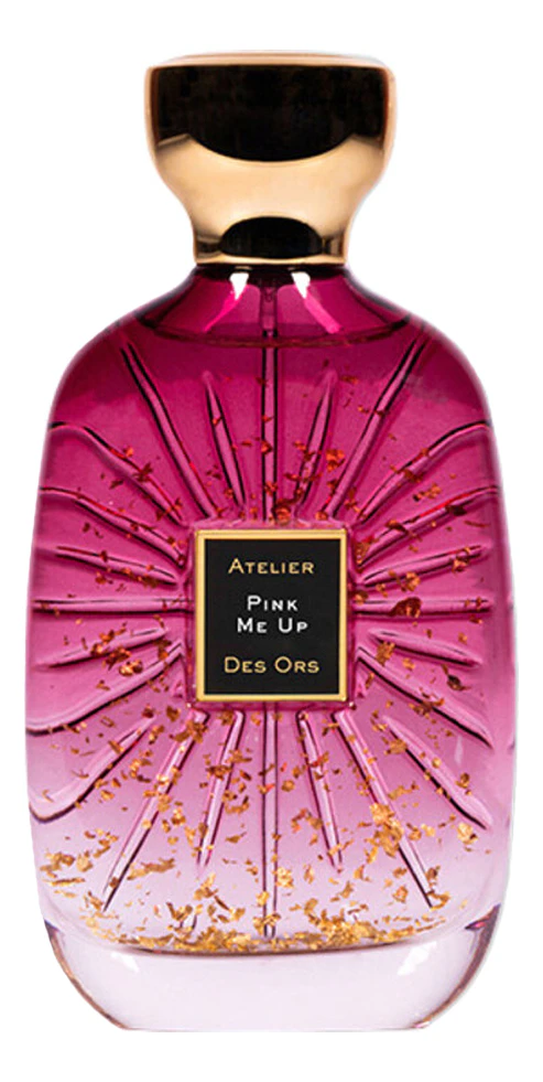 Парфюм Atelier des Ors Pink Me Up упрятан в градиентно окрашенный стильный розовый флакон. Хлопья сусального золота, парящие в толще парфюмерной жидкости, придают флакону особую роскошь и стиль.