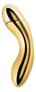 Флакон аромата изогнутой формы выполнен в цвете желтого золота.