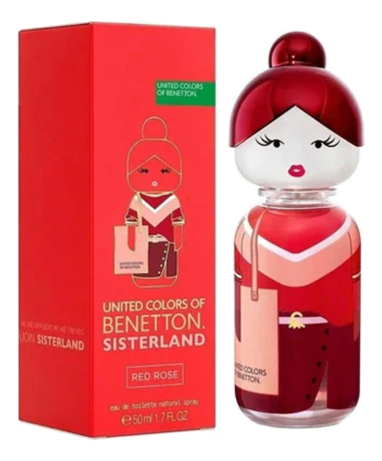 Benetton Sisterland Red Rose — яркий, летный и жизнерадостный женский цветочно-фруктовый аромат, выпущенный в 2021 году итальянским модным домом Benetton. Аромат является частью коллекции Sisterland United Colors of Benetton, являющейся дополнением к линейке летней женской одежды. Флаконы коллекции стилизованы под забавные женские фигурки. Флакон аромата Red Rose имитирует женщину в красном свитере и бордовой юбке. А оригинальный колпачок в форме женской головки делает флакон похожим на детскую игрушку.