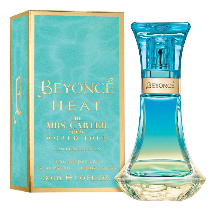 Beyonce Heat The Mrs.Carter Show World Tour LimitedEdition – это ноты ягод асаи и пурпурного мангустина в окружении розового перцаи цветков орхидеи, арабского жасмина и лепестков фиалки, индонезийскоговетивера, австралийского сандала и мадагаскарской ванили.