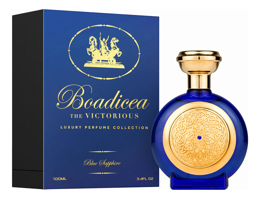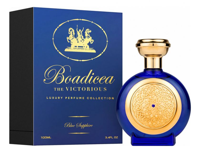 Boadicea The Victorious Blue Sapphire («Голубой сапфир» от Боадицея Виктори) – новый аромат, выпущенный в 2013 году. Букет представляет восточное направление в парфюмерии. Он посвящен юбилею свадьбы британской королевы и ее супруга. Сапфировый флакон украшен золотом и помещен на шелковое ложе.