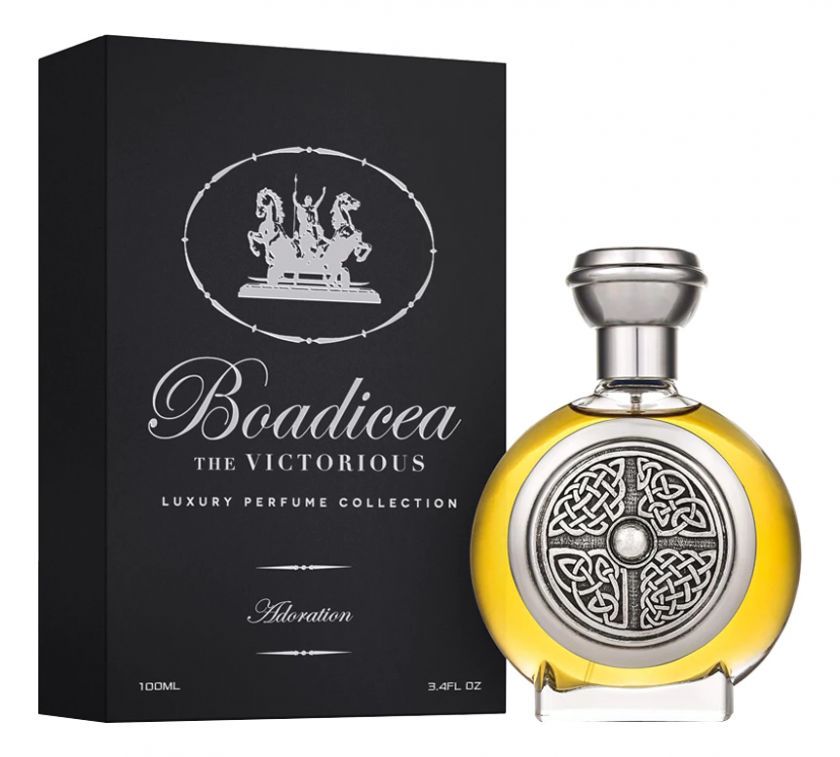 Adoration — роскошная парфюмерная вода с восточно-гурманским ароматом для женщин и мужчин, представленная в 2019 году парфюмерным брендом Boadicea The Victorious из Великобритании. Возбуждающий и целеустремленный аромат посвящен легендарной смелой царице Британии Боадиции, почитаемой Иценами и являвшаяся грозой для Римлян.