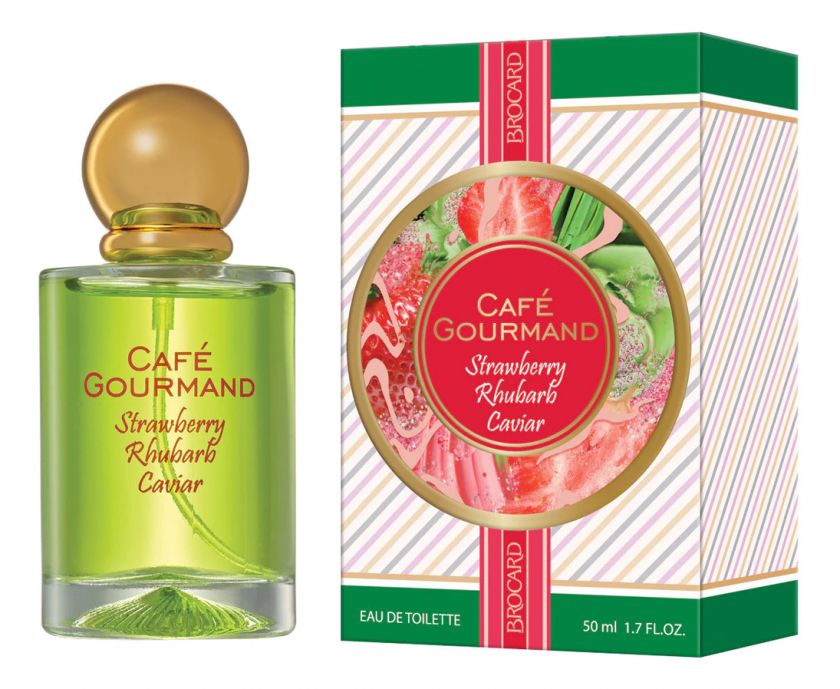 Cafe Gourmand Strawberry Rhubarb Caviar — нежный и оригинальный женский фруктовый аромат, окутанный мягкими оттенками фруктовых нот, выпущенный в 2019 году российским парфюмерным брендом Brocard. Созданная парфюмером Марин Ипер ароматическая композиция вдохновлена чудом молекулярной кухни Strawberry Rhubarb Caviar (клубничная икра из ревеня) — прекрасным способом сломать стереотипы. По форме и текстуре — это настоящая икра, но на языке каждая икринка тает свежим соком ревеня и сладостью спелой клубники.